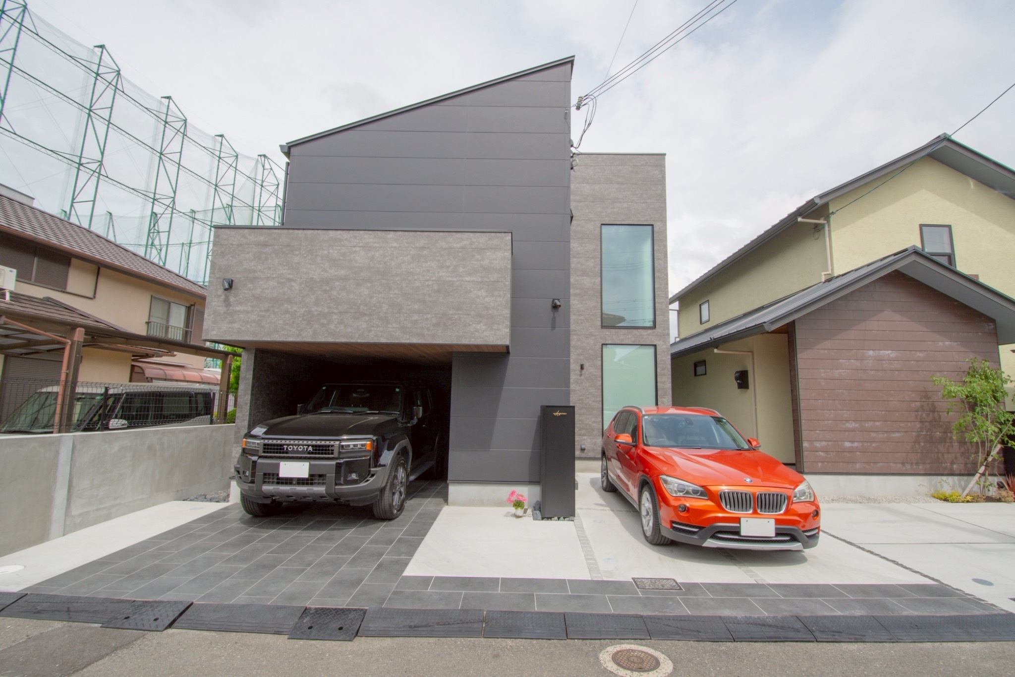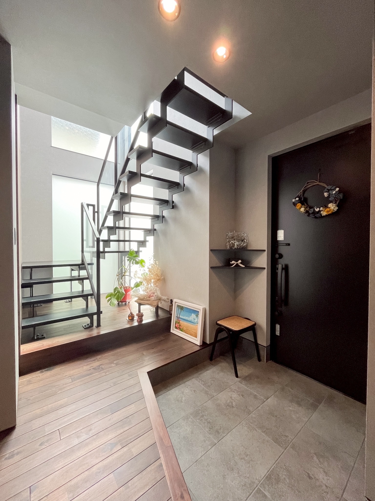 インナーガレージからそのまま行ける隠れ玄関から入ると、素敵なエントランスでお出迎え!住宅街ですが、大きな窓があり解放感◎すりガラスを採用してプライベートも守られて安心ですね♪お洒落なアイアン階段を上ると、大開放のLDK+プライベートテラスがあります。周りの目線も気にせずに、ご家族で幸せなひとときを過ごせる空間となっております。大容量のクローゼットとファミリークローゼットを採用して収納も◎ランドリールームも完備で生活動線も考え抜かれたお家です!